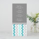 Elegant wedding dinner menu in elegant bright turquoise aqua blue, grey and white chevron zigzags retro pattern, customizable with your dinner details, available in a wide range of matching wedding products.