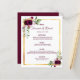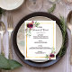An elegant bohemian boho style wedding menu card. Feathers and lush watercolored roses in burgundy. Templates for your names, date and the wedding menu. A faux gold frame and a chic white background on front, burgundy on back. Burgundy colored letters.