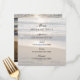 Wedding dinner menu with a beautiful photo of the waves crashing on the beach at sunset, perfect for a beach or tropical wedding, customizable with your details and available in matching wedding products.