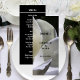 Wedding Menu White Magnolia Black and White Card designed with a bright white magnolia flowers on the front with text: Menu, The Bride and Groom's Names and Wedding Date. The reverse text includes: Menu, Your Appetizer, Entre and Dessert Selections in white text on a black background. To personalize, simply insert your details into our easy template, replacing the sample text. Be sure to view the complate White Magnolia Black and White Wedding Collection for matching cards and accessories.