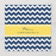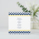 Wedding dinner menu in elegant dark navy blue, bright lemon yellow and white with fun retro chevron zigzags pattern, customizable with your details and available in matching wedding products.