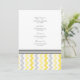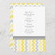 Wedding dinner menu in elegant bright lemon yellow, grey and white with fun retro chevron zigzags pattern, customizable with your details and available in matching wedding products.