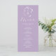 This elegant purple wedding menu features a simple monogram encircled with lavender line art. The word "Menu" is set in calligraphy script. Use the template fields to add the bride and groom's initials, names and custom menu items. Perfect for weddings, rehearsal dinner, engagement parties and more.