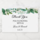 This mini sparkling wine bottle label is shown with a wedding greenery design with sample names and date.