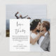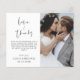 Budget Wedding Thank You Cards that have a photo on the front and back. The Thank you cards contain a modern hand lettered cursive script typography that are elegant, simple and modern to use after you wedding day celebration.