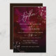 WEDDING INVITATION | Hand painted jaspé in shades of rich ruby and garnet reds - accented with rose gold nuggets at the corners. Handwritten script calligraphy text on the diagonal "together" at the top allows a warm personal appeal - easy to personalize template.