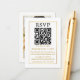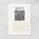 Modern Minimalist Simple Wedding RSVP Card with your QR Code. Gold Frame. Black & White with Gold Text. Photo Back.