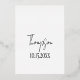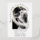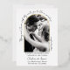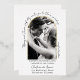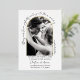This wedding invitation is modern, simple, and elegant. A handwritten script style text creates a partial arch while the date and time are listed below the photo. A real foil arch surrounds the photo. The back of the invitation lists the couple's last name and wedding date.