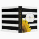 Black and white sunflower wedding binder- Modern, bold, wide black and white stripes pattern background. Bride and groom's monogrammed names in elegant gold lettering with a large ampersand sign. Custom wedding date underneath in matching gold. Matching striped design on back with black spine that reads 'Our Wedding Day' in matching gold letters, which may be changed, deleted, or font color and/or style edited. Appeals to many different tastes. There are so many possibilities for this modern floral binder, it boggles the mind- bridal shower guest book, photo album of milestone birthdays or anniversaries, and many more special occasions. Personalized wedding keepsake makes country floral black and white anniversay gift or monogrammed wedding shower gift for newlyweds. Matching floral black and white wedding decor in our Zazzle.com/angela65 shop. Or visit for lots of other personalized photo binder books.