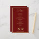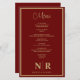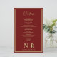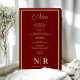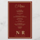 Crafted with sophistication in mind, our personalized dinner menu features a deep, rich hue of dark red accented with luxurious gold detailing. The elegant design showcases your custom monogram, adding a personalized touch that sets the tone for an unforgettable evening.