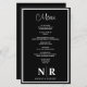 Dine in style with our Black and White Wedding Monogram Customized Rehearsal Dinner Menu, the perfect blend of elegance and personalization for your special event. Crafted with meticulous attention to detail, these custom menus add a touch of sophistication to your rehearsal dinner, engagement party, or wedding reception.