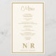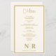 Tailored to your unique style, our customized rehearsal dinner menus feature a timeless off-white backdrop accented with shimmering gold accents. Your personalized wedding monogram takes center stage, adding a bespoke touch that sets the tone for an unforgettable evening.