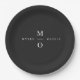 Wedding Monogram Elegant Minimal Stylish Black Paper Plates