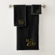 Wedding Monogram Gold Initials Serif Script Black Bath Towel Set