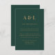 Wedding Monogram Minimalist Emerald Green Gold Enclosure Card