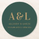 Wedding Monogram Minimalist Emerald Green Gold Round Paper Coaster