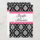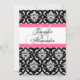 Wedding Monogram Pink Damask Invitation Back View