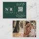 Our Emerald Green and White Wedding Monogram RSVP QR Code Photo Elegant Enclosure Card is the perfect choice for couples seeking modern convenience and classic elegance for their wedding RSVPs.