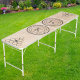 The Wedding Monogram Star White Ash Wood Beer Pong Table adds a touch of rustic charm to any wedding celebration. Featuring a delicate white ash wood finish and an elegant monogram star design, this table serves as both a playful activity and a chic statement piece. It effortlessly combines fun and style, inviting guests to enjoy a memorable game while enhancing the event's overall ambiance with its refined aesthetic.