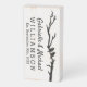 Celebrate your wedding or anniversary with this elegant, minimalist rustic wooden box sign. The personalized sign includes a silhouette of two love birds sitting on a tree limb together. Below that, use the easy templates to add your names, surname, and established date (or any text you like). TIP: You can also customize further to alter font sizes or rearrange and resize elements. This simply beautiful box sign is the perfect way to celebrate your wedding.