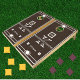 Natural Wood Cornhole Set, Yellow and Purple bags