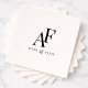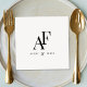 These custom monogram wedding napkins feature a clean black and white typographic design that adds a refined and personal touch to your celebration. Designed for versatility, the layout highlights your couple initials in a modern monogram style with balanced spacing and elegant lettering that works across a wide range of wedding themes. Perfect for cocktail hour, drinks stations, dessert tables or evening receptions, these napkins elevate your table styling while remaining simple and timeless. The monochrome palette ensures they pair easily with any color scheme or venue setting from classic to contemporary. The design is also ideal for engagement parties, bridal showers, rehearsal dinners or anniversary events. A polished and meaningful detail that ties your wedding stationery together with a cohesive and personal finish.