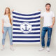 Wedding Nautical Anchor Blue Stripe Monogram Fleece Blanket