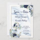 Announce your wedding date with this elegant nautical SAVE THE DATE card with a watercolor navy blue and white floral gold anchor and blue marble background. Contact the designer via Zazzle Chat or makeitaboutyoustore@gmail.com if you'd like this design modified, on another product or would like coordinating or complementary items.