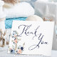 Beautiful elegant nautical, coastal or beach themed wedding Thank You cards featuring a nautical anchor accented with watercolor flowers in navy blue, peach, light blue and white, fancy lettering calligraphy script typography for the title and text in navy blue. Include a preprinted appreciation message or delete the sample text to leave blank for handwriting your personal notes. ASSISTANCE: For help with design modification or personalization, color change, transferring the design to another product or you would like coordinating items, contact the designer BEFORE ORDERING via the Zazzle Chat MESSAGE tab or email makeitaboutyoustore@gmail.com.