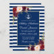 Wedding Nautical Blue Stripes Burgundy Invite