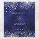 A navy blue background with elegant faux silver glitter dust. The blue color is uneven. Personalize and add names and your wedding date.