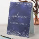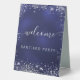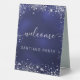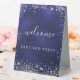 Wedding navy blue silver name script welcome table tent