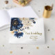 Wedding Navy Blue White Golden Floral Silver Guest Book