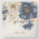 Wedding Navy Blue White Golden Floral Silver Stone Coaster