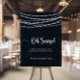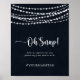 This wedding oh snap rustic string lights sign is perfect for a simple wedding or bridal shower. The design features beautiful hand-painted string lights in a dark blue background. Personalize the sign with your wedding hashtag.