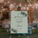 A olive green background. Decorated with olives and olive leaves. Personalize and add your names and the wedding date.