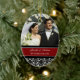 Customizable photo wedding ornament in elegant and modern red, black and white classic floral damask pattern. Perfect as a christmas keepsake to remember your special day or celebrate your first christmas or as personalized wedding favors.
