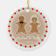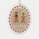 An ornament to celebrate your first Christmas as husband and wife. Ornament features an illustration of a gingerbread bride and groom. Light brown background with red & green candy circle surrounding design. Personalize the white text under bride and groom with your names and wedding date.