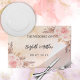 A paper placemat, placemats for a Wedding, reception dinner table setting. A rose gold and blush pink gradient background. Decorated with pink flowers and pampas grass. Personalize and add your names and the wedding date.
