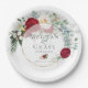 Wedding Paper Plate | Eucalyptus leaves, whimsical foliage along with burgundy and ivory peonies grace a round gold frame. Elegant scarlet floral set off beautifully by the blue green eucalyptus foliage. Features a simple classic text style (that can be changed if you like just Click Personalize this template then in the drop down, choose Click to customize further- here you can change the font and text colors as well as background color) This is part of a design coordinated wedding suite collection designed by the BarefootBride™.