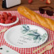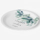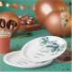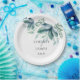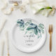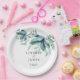 This wedding designed paper plate is shown with a eucalyptus vine art print.