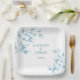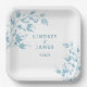 This wedding designed paper plate is shown with a lovely dusty blue leaves print.