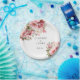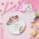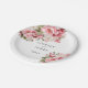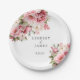This wedding designed paper plate is shown with a romantic pink peony print.