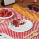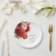 Wedding paper plate is shown with a lovely red peony floral print.