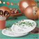 This wedding paper plate is shown with a eucalyptus vine leaves art print.