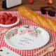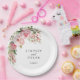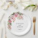 Wedding paper plate is shown with a lovely pink rose floral print.