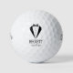 These golf balls are a great favor for your entire wedding party. They feature a fabulous tuxedo and striped bow tie in black. With a first name in a traditional CAP font and the date in a coordinating script font also in black they're perfect for the groom, best man, groomsmen, and ushers. They'd be great for a bachelor party or weekend.