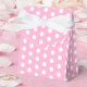 Favor box shown in a pink and white polka dots print. Tip: Add some ribbon to it.