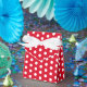 Favor box shown in a red and white polka dots print. Tip: Add some ribbon to it.
