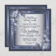 Wedding Party Navy Blue Floral Frame Silver Modern Invitation